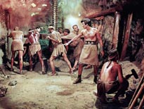 In den Laboratorien von Atlantis werden Sklaven in Tiermenschen verwandelt. Durch eine grausame Prozedur wachsen den Menschen Tierköpfe, und sie verlieren Stück für Stück ihr menschliches Wesen. Auch Demetrios droht dieses Schicksal. Im letzten Moment willigt der König ein, dem Griechen die Chance zu geben, bei der Prüfung mit Feuer und Wasser die Freiheit zu erlangen. In der Arena vor dem blutrünstig johlenden Volk muß Demetrios um sein Leben kämpfen. Er siegt und wird freigelassen.