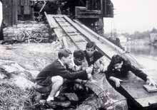 Nachdem der Unteroffizier, der sie befehligt, von einem Gang zur Beschaffung von Verpflegung nicht zurückkehrt, weil er in der Stadt als vermeintlicher Deserteur abgefangen wird, sind die jungen Soldaten sich selbst überlassen. Da sitzen sie in der Nacht und sehen mit ungläubigen Augen die LKW-Kolonnen abgekämpfter und verwundeter Wehrmachtssoldaten passieren, die sich auf dem Rückzug vor den heranrückenden Amerikanern befinden.
