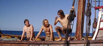 Während der großen Reise fokussiert sich der Film auf die Entwicklung der Beziehung zwischen Hajo und Rolf. Die zwei Jungen stehen sich anfangs in bissiger Rivalität gegenüber. Rolf ist der Erfahrenere, Hajo ist der Kämpferische. Durch die Ereignisse an Bord und später nach dem Schiffbruch lernen sie, ihre jeweiligen Fähigkeiten füreinander einzusetzen. Es entsteht eine tiefe Freundschaft, an der sie beide reifen.