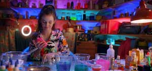 Indy macht derweil eine bahnbrechende Entdeckung: Die kleinen leuchtenden Tintenfische, die ihr Vater, der Biologe, zu Forschungszwecken im Aquarium hält, sondern natürlicherweise eine Menge Schleim ab. Ein bißchen von dem Sekret der Octopoden in das Slime-Rezept gemixt, und es entsteht der in wechselnden Farben aufleuchtende "Octo-Slime"!