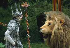 Nach einem Streit mit seinen Geschwistern läßt sich Edmund von der Hexe mit türkischem Honig in deren Schloß locken und verrät seine Freunde. Aslan läßt Edmund retten, doch er muß dafür selbst ein großes Opfer bringen. In einem großen Kampf besiegen die Tiere, Faune, Zwerge, Riesen und andere Fabelwesen Seite an Seite mit den tapferen Menschenkindern die Weiße Hexe und ihre bösen Geister. Aslan krönt die vier Kinder zu den Königen und Königinnen von Narnia.