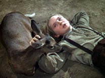 Ein Jahr später ist es fast ausgewachsen und gefräßiger denn je. Nachdem zuerst ein Unwetter die Ernte vernichtet hat, frißt auch noch das Reh die frische Aussaat. Der Familie droht Hunger. Unter immenser Anstrengung baut Jody einen Zaun um das Feld, damit das Reh nicht wieder die jungen Pflanzen abknabbert. Doch das schlaue Tier überwindet auch dieses Hindernis. Es ist zu sehr an das Leben bei den Menschen gewöhnt, daß es nicht allein in der Wildnis bleibt. Es muß nun eine harte Entscheidung getroffen werden. Wenn die Familie überleben will, muß Jody sein Reh erschießen...