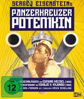 | Extras: | Wendecover, Rekonstruierte Fassung aus 2005 mit der Originalmusik von Edmund Meisel (1926) (ca. 64 Min.) / Mosfilm-Fassung aus 1950 mit der Musik von Nikolai N. Krjukow in der deutschen DEFA-Bearbeitung (ca. 64 Min.) / Ton-Dokument der Wiederaufführungsfassung 1959 mit neu gesprochener Einführung von Erich Schellow (ca. 55 Min.) / Audiokommentar von Filmhistoriker Dr. Rolf Giesen / Die musikalische Salve eines Panzerkreuzers - von Prof. Peter Rabenalt (ca. 17 Min.) |