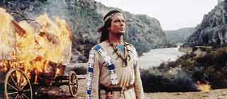 Winnetou und Old Shatterhand sind zweifelsohne Ikonen der deutschen Popkultur. Die westdeutschen Karl May Verfilmungen der 1960er Jahre mit Pierre Brice und Lex Barker in diesen Rollen gehören zu den unvergeßlichen Evergreens. Wer mag da schon kritisieren, daß etwa der Zweikampf von Winnetou und Großer Bär in der Choreographie völlig albern ist? Es handelt sich um naive Filmkunst.