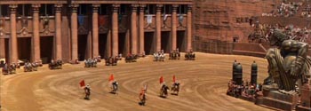 Als eines Tages das Schiff bei einer Schlacht zerstört wird und sinkt, rettet Ben Hur dem römischen Konsul Quintus Arrius das Leben. Der schenkt ihm die Freiheit und adoptiert ihn als seinen Sohn. In Rom läßt er ihn zum Wagenführer ausbilden. Im Circus Maximus fährt Ben Hur erfolgreiche Rennen im vierspännigen Streitwagen.