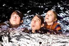 Der Science Fiction Roman "War Of The Worlds" von H. G. Wells spielt in England. Der Protagonist ist ein einzelner Mann. Bei Spielberg muß die Handlung natürlich in den USA spielen, und es muß eine Familie sein, und die Hauptrolle muß mit Tom Cruise besetzt werden, weil es in ganz Amerika keinen miserableren Schauspieler gibt. Rays Kinder fragen nach den ersten Angriffen, "sind das Terroristen?" worauf Ray antwortet, "die kommen woanders her", und sein Sohn fragt darauf nach, "Europa?" Bei solchen Dialogen muß der europäische Kinozuschauer schon Hopfen und Malz verloren glauben. Mit dem Roman hat das geistlose Effektspektakel nicht viel zu tun. Es wird nicht mal erwähnt, daß die Invasoren vom Mars kommen.
