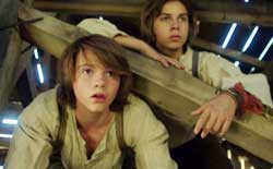In Jo Kastners Version sind Tom Sawyer und Huckleberry Finn keine schmutzigen kleinen Lausbuben, sondern bildschöne, gut gepflegte Teenager, die den Stimmbruch schon hinter sich haben. Immerhin laufen sie noch barfuß über Stock und Stein. Joel Courtney (Tom) hatte mit 14 in dem Mystery-Thriller "Super 8" seine erste Filmrolle und arbeitet seitdem fleißig vor der Kamera. Jake T. Austin (Huck) hatte als Teenie die Hauptrolle in "Das Hundehotel", ansonsten ist er hauptsächlich in TV-Serien zu sehen. Beide Jungs dürften mit schon fast 20 Jahren wohl zum Zeitpunkt der Dreharbeiten zu den ältesten Darstellern gehört haben, die jemals in die Rollen von Tom und Huck geschlüpft sind.