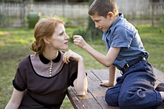 Die Kindheit von Jack und seinen zwei jüngeren Brüdern verläuft dialogarm. Die Mutter versinkt stumm in ihrer religiösen Verzückung. Der Vater beschränkt sich auf das Erteilen von Befehlen und Belehrungen. Terrence Malick setzt ganz auf die Kraft der Bilder. Er arbeitet dabei so offensichtlich suggestiv, daß man den Film trotz seiner visuellen Kunstfertigkeit als polemisch bezeichnen muß.