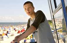 Die Schule hat er schon aufgegeben, jetzt jobbt er in einem Fischimbiß und hilft dem polnischen Strandaufseher beim Verkauf von geschmuggelten Zigaretten. Zuhause muß er seinen alkoholkranken Vater ertragen.